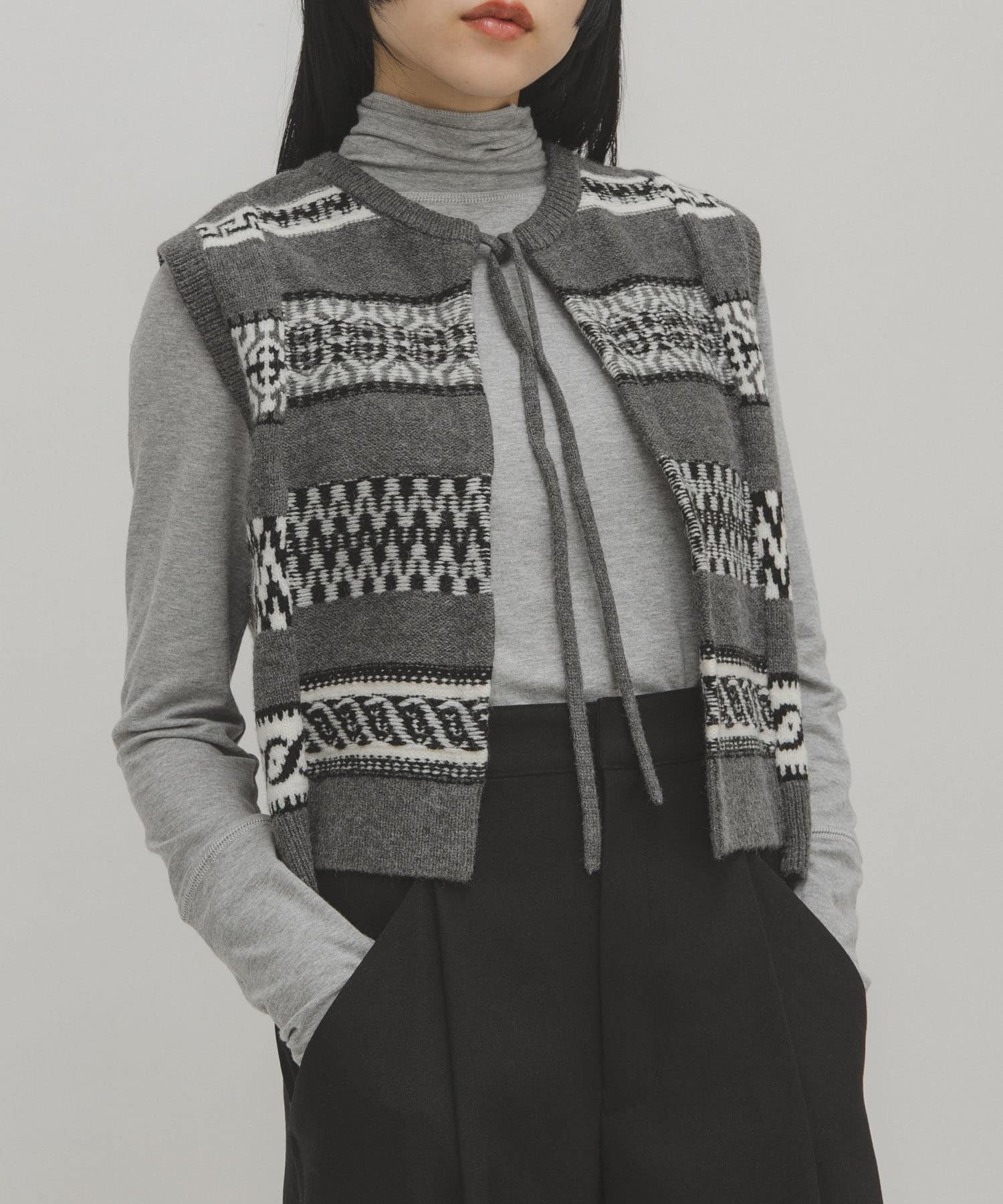 【SALE/30%OFF】KBF ジャガードリメイクベスト ケービーエフ トップス ベスト・ジレ グレー ブラウン ブルー【送料無料】