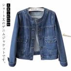 ショート丈 レディース デニム ジャケット デニムジャケット アウター ノーカラー 脚長効果 カジュアル 春服