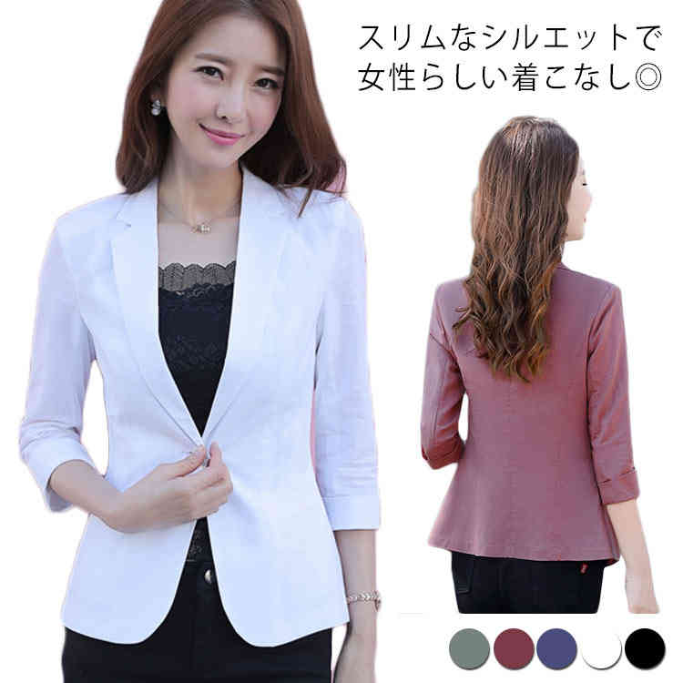 テーラードジャケット ジャケット スリム レディース 送料無料 無地 綿麻ジャケット リネン ショート丈 7分袖 フォーマル スーツ ビジネス OL オフィス サマージャケット