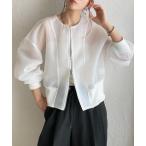 ブルゾン アウター ノーカラーボリューム袖シャーリングスリーブショートブルゾン レディース