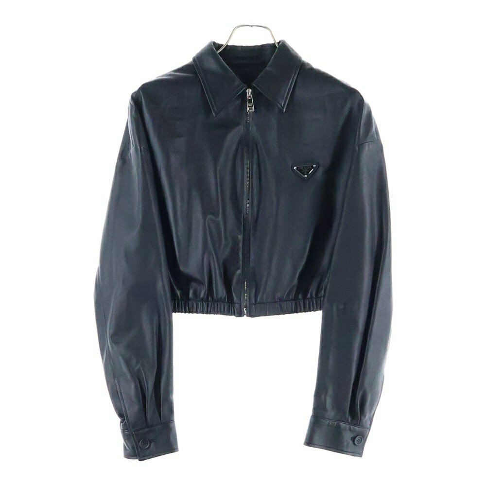 PRADA(プラダ) サイズ:42 SHORT LEATHER ZIP UP JACKET トライアングルロゴジップアップジャケット フーディー ショート丈 ブラック 58A121 S222 6N3【新古品/中古】【程度S】【カラーブラック】【取扱店舗BRING福岡天神店】