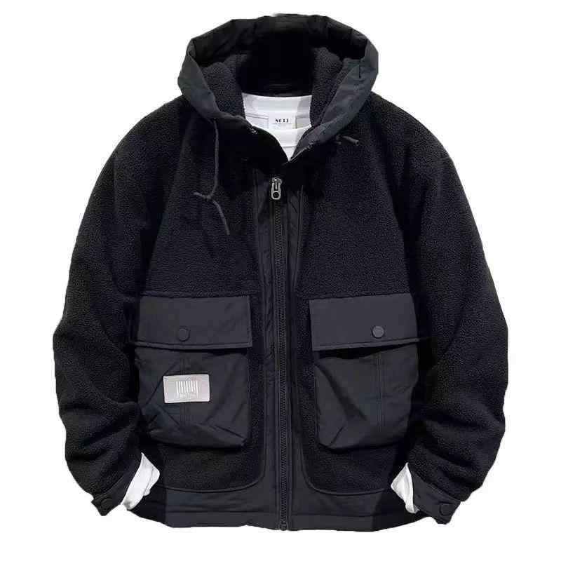 ボアジャケット メンズ 秋冬 アウター 緑 黒 英字 ポケット ジップアップ フード キルティング 裏地 綿 防寒 保温 厚手 暖かい もこもこ 大きいサイズ ゆったり レジャー アウトドア カジュアル