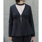 ジャケット ノーカラージャケット ストレッチジョーゼットノーカラーショートジャケット レディース