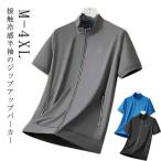 ジップアップ 半袖ジャケット ストレッチ スタンドカラー 薄手 パーカー メンズ ブルゾン 冷感 夏アウター 冷感 立ち襟 ひんやり 吸汗速乾 涼しい
