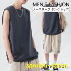 タンクトップ メンズ ノースリーブ Tシャツ カットソー 袖なし 大きいサイズ 夏 丸首 体型カバー ロゴT 軽量 無地 薄手 ゆったり 夏服