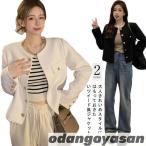 ツイードジャケット レディース アウター ノーカラー ジャケット 長袖 きれいめ オフィスカジュアル お呼ばれ 秋 冬 韓国ファッション 羽織り オケ