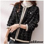 ツイードジャケット レディース 40代 長袖ノーカラージャケット 黒ショット丈ツイードコート 春コートアウター 秋服 大人韓国風 通勤OL 入学式 卒業式30代 20代