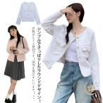 ジャケット ノーカラージャケット ツイード風 ジャケット レディース韓国風 レディース