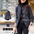 ジャケット ノーカラージャケット 入学式 卒業式 「S-3L」オンとオフで印象が変わる ライトツイードジャケット レディース
