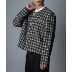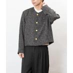 コート ジャケット ツイード ゴールドボタン ノーカラー ショート丈 ジャケット(GW) メンズ レディース