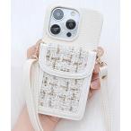 スマホケース カラーツイードポケット付きレザー調iPhoneケース