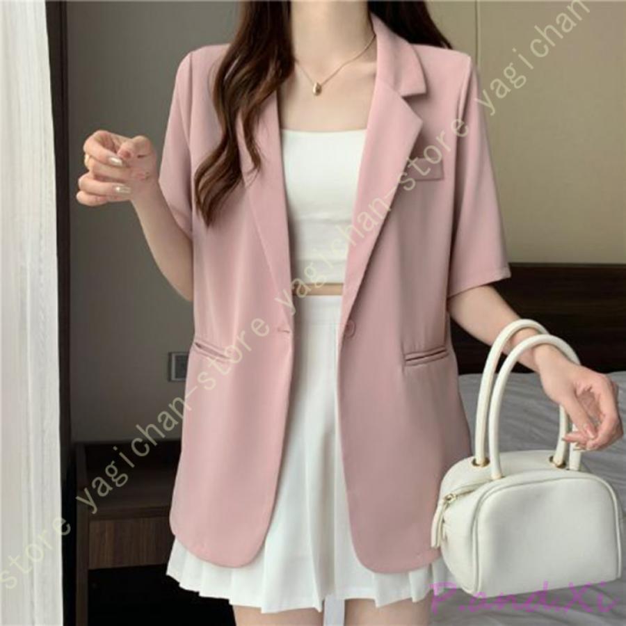 【期間限定10%OFF】テーラードジャケット レディース テーラード 半袖 ライトアウター フォーマル スーツ カジュアル 夏 トップス オフィス 通勤 OL ビジネス 薄手 羽織 上着