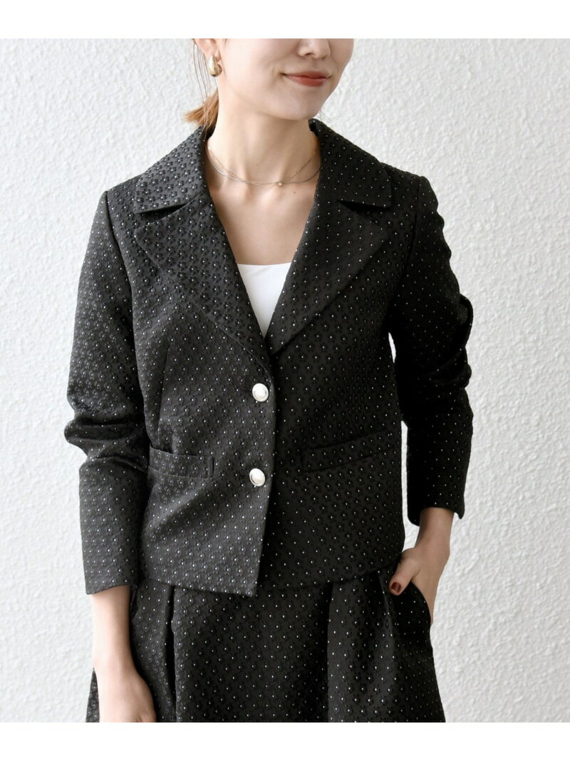 【SALE/40%OFF】SHIPS any SHIPS any:<手洗い可能>フラワー ジャカード ショート テーラード ジャケット シップス ジャケット・アウター テーラードジャケット・ブレザー ブラック ホワイト【送料無料】