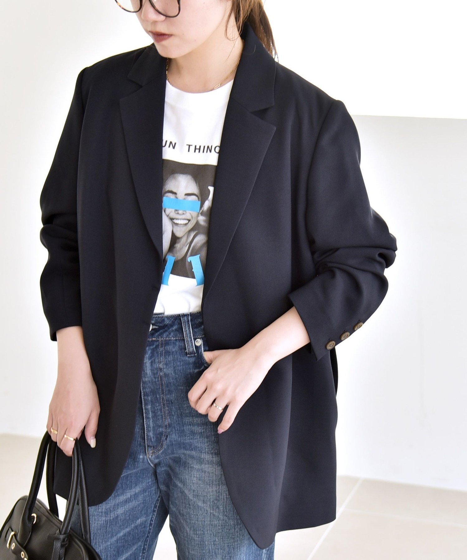 【SALE/50%OFF】SHIPS any: オックス シングル テーラード ブレザー ジャケット[NAVY BLUE] SHIPS any シップス ジャケット・アウター テーラードジャケット・ブレザー ネイビー ベージュ【RBA_E】【送料無料】[Rakuten Fashion]