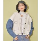 レイヤード デニム ジレ ノースリーブ デニムジャケット デニムベスト レディース ジャケット 重ね着 トップス ショート丈 コンパクト ゆったり 春