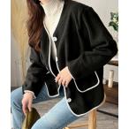 ジャケット ノーカラージャケット 上品なやわらかさをまとう冬の味方♪ 配色ラインノーカラーコート レディース