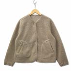 ユニクロ UNIQLO ボア フリース ノーカラージャケット ベージュ L レディース