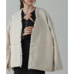 ジャケット ノーカラージャケット ノーカラーボアジャケット レディース