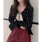 ジャケット ノーカラージャケット クルーネックドット柄ニットカーディガン レディース