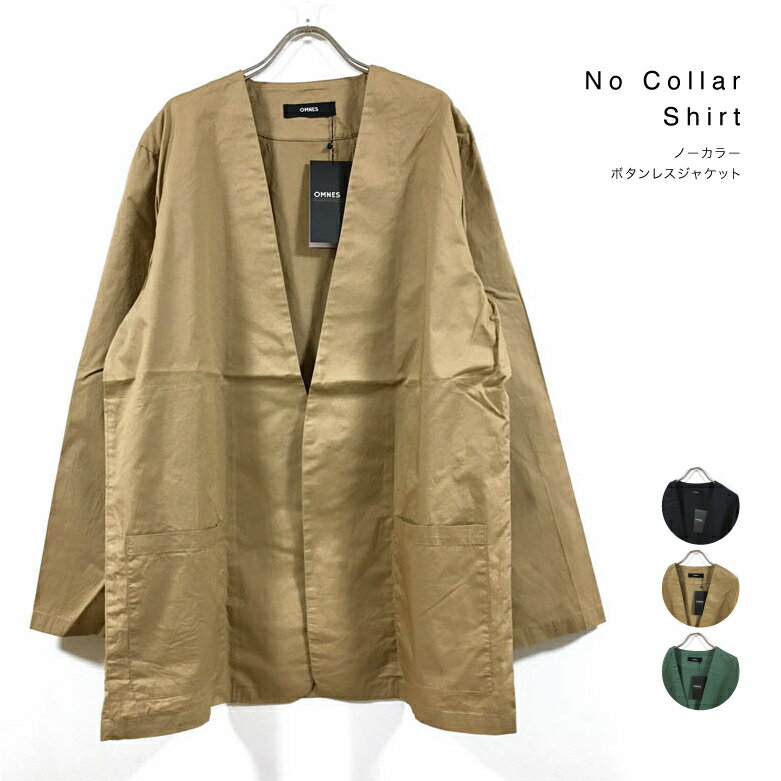 タイプライター 製品洗い ノーカラー ボタンレス ジャケット 無地 メンズ 【 送料無料 】 シャツ アウター モード ワーク ストリート系 ファッション 黒 ベージュ カーキ M L サイズ