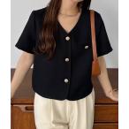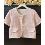 ジャケット ノーカラージャケット ツイード風半袖ジャケットレディース韓国風 レディース