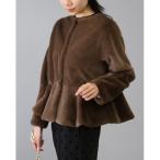 ジャケット ノーカラージャケット ペプラムエコファーフェイクファージャケット レディース