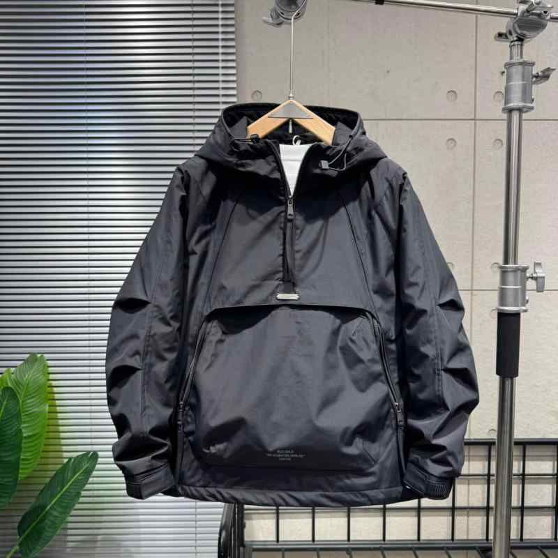 マウンテンパーカー メンズ プルオーバー ハーフジップ フード付き ジャケット 秋冬 アノラック 撥水 防風 ワーク ストリート カジュアル ブラック グレー レッド