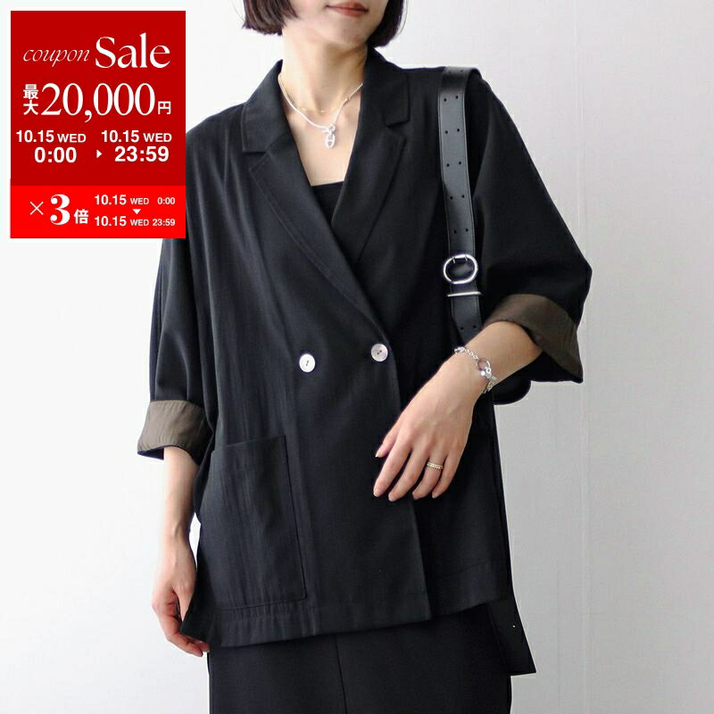 【10/15限定・最大2万円OFFクーポン配布中】CHIGNON シニヨン シアー ジャケット 4853-464BZ レディース 七分袖 ダブルブレスト ドルマンスリーブ ブラック