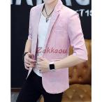 サマージャケット メンズ 七分袖 七分袖ジャケット 夏 テーラードジャケット スリム 細身 アウター ジャケット ショート丈 サマー 薄手 シンプル