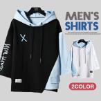 『2個以上購入で400円OFF』 パーカー メンズ 七分袖 フード付き Tシャツ レイヤード プルオーバー 半袖パーカー 夏服 大きいサイズ ストリート系 体型カバー