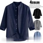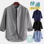 【特価】!七分袖シャツ メンズ カジュアルシャツ ストライプ 立ち襟 シャツ シンプル 無地 ビジネス 開襟シャツ リネン 綿麻 おしゃれ 通勤 通学 夏