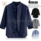 【特価】ストライプシャツ メンズ 七分袖シャツ カジュアルシャツ夏物 バンドカラー ビジネス カジュアル ス 父の日 プレゼント