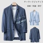 テーラードジャケット リネン ジャケット 七分袖 メンズ ブレザー 無地 サマージャケット 亜麻100% カジュアルジャケット 二つボタ