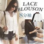 ブルゾン 春夏秋物 八分袖 ジャケット 総レース ジップアップ 花柄 アウター レディース 長袖 MA1 ジャンパー 春夏秋物