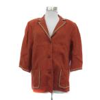 レリアン Leilian テーラードジャケット ミドル丈 八分袖 シングルボタン 刺繍 麻 リネン マルチカラー 赤 レッド /YS30 レディース