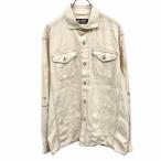 チャップス CHAPS シャツジャケット ホリゾンタルカラー 長袖 袖ロールアップ ボックスカット 両胸ポケット 麻×綿 L ベージュ メンズ