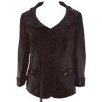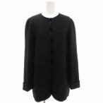 ピノランチェッティ PINO LANCETTI ノーカラージャケット 刺繍 袖ロールアップ 40 黒 ブラック /GV ■GY99 レディース