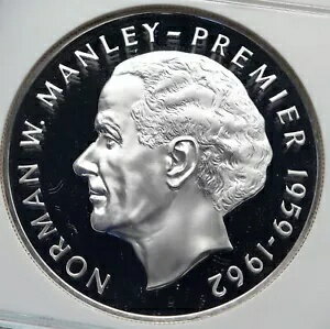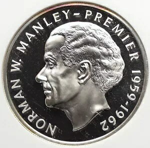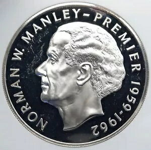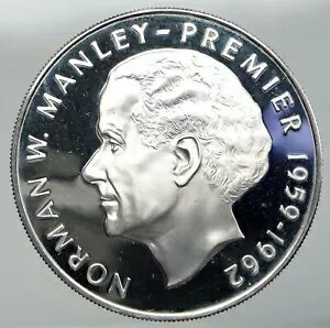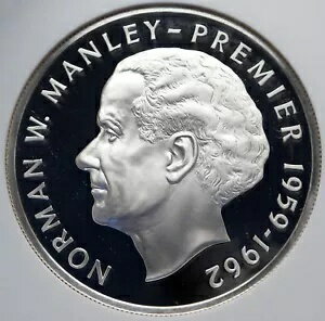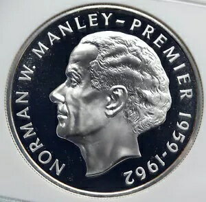 1974 ジャマイカ プレミア ノーマン W マンリー ヴィンテージ オールド プルーフ シルバー $5 コイン NGC i85236