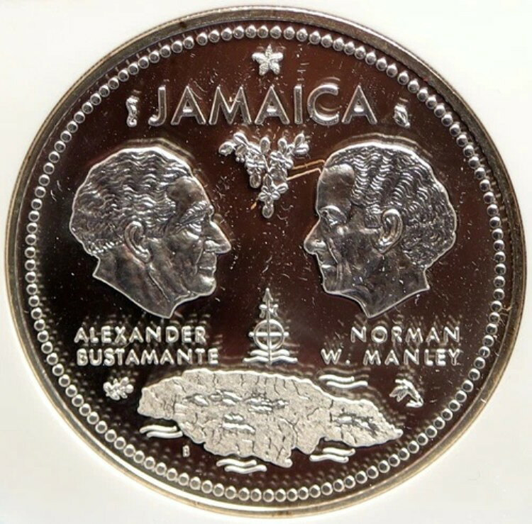1976年 ジャマイカ 巨大プレミア ノーマン・W・マンリー オールドプルーフ シルバー 5ドルコイン NGC i85978