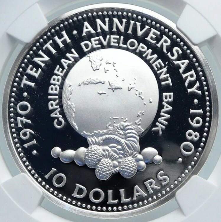1980年 ジャマイカ カリブ開発銀行 ヴィンテージ プルーフ シルバー 10ドル コイン NGC i87835