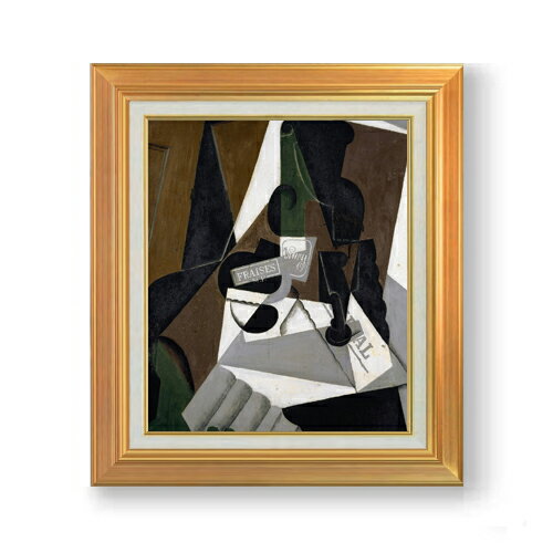 【油絵 直筆仕上げ】フアン・グリス いちごジャムの壺 F8 【シンプルフレーム】 絵画 販売 8号 油彩 抽象画 485×410mm 複製画 送料無料 プレゼント ギフト 開店祝い 開業祝い 退職祝い 新築祝い リビング 玄関 モダン 近代アート 壁掛け