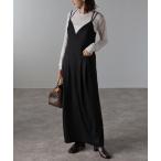 ジャンパースカート ポケット付き 深Vネック ノースリーブ ロング ワンピース