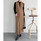 【11/28 50%OFF!2点購入クーポンで】即納!ジャンパースカート かっこいい Vネック ロング ファスナー おしゃれ ロングワンピース 膝下 ノースリーブ 重ね着 体型カバー きれいめ 膝丈 ロング丈 レディースファッション 40代 50代 60代 ワンピスター