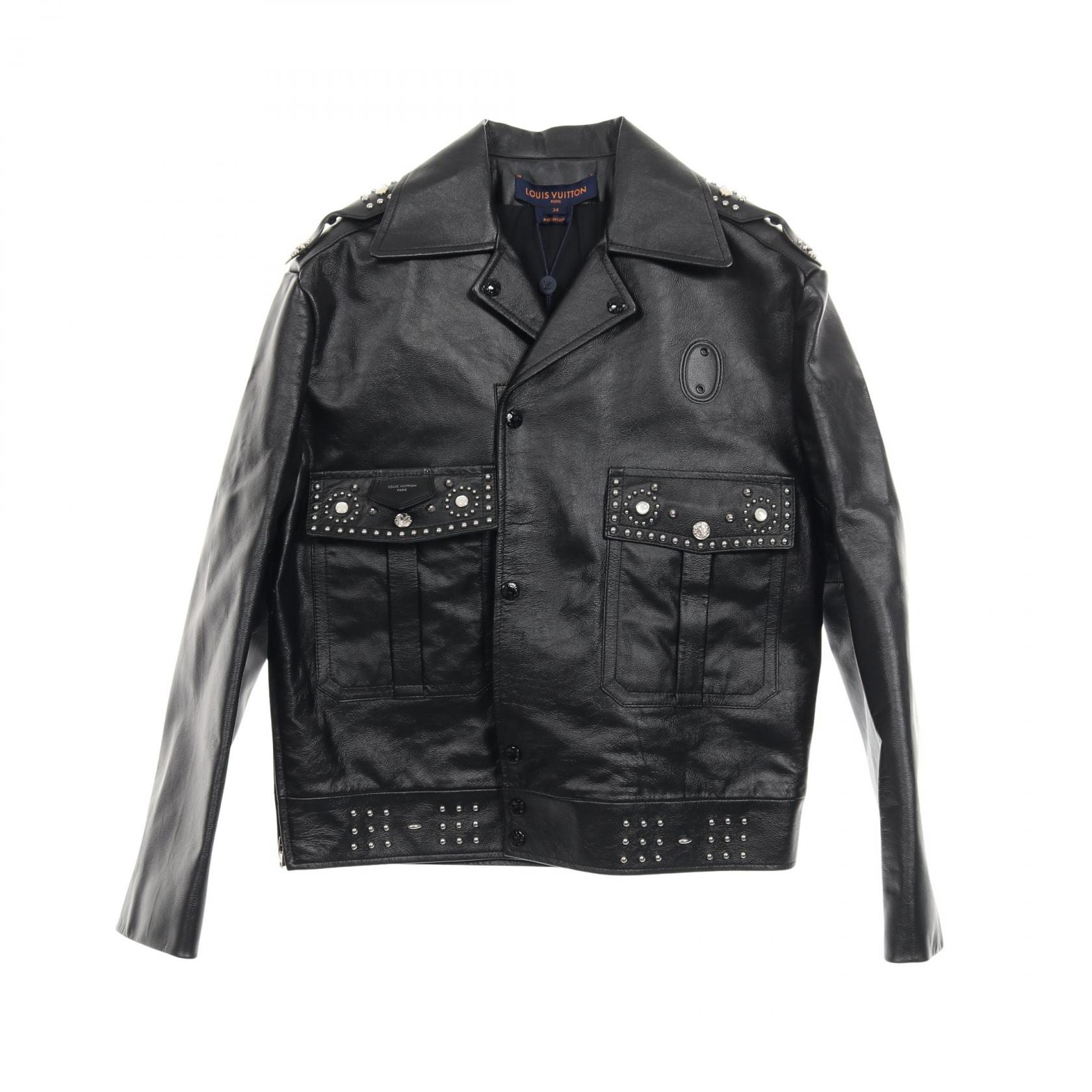 ◆まとめ買い|20%OFF対象◆ルイ・ヴィトン LOUIS VUITTON モノグラムシャドウ 革ジャン 衣料品 アウター カーフレザー メンズ ブラック系 / グレー系 HKL04EMJY 【中古】