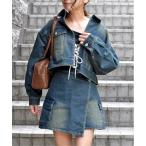 デニムジャケット gジャン クロップドタックスリーブデニムジャケット レディース