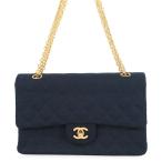 シャネル チェーンショルダーバッグ ジャージーマトラッセ ネイビー ダブルフラップ ココマーク CHANEL