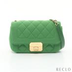 爆買 シャネル CHANEL マトラッセ シングルフラップ チェーンショルダーバッグ コットンジャージー レザー グリーン ゴールド金具 レディース 中古