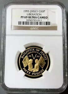 1995 ゴールド ジャージ 500 鋳造 50 ポンド リベレーション 1/2 オンス NGC プルーフ 69 UC