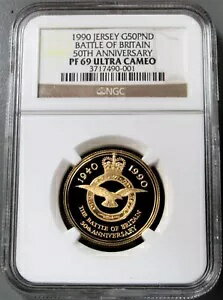 1990 ゴールド ジャージー 500 鋳造 50 ポンド 英国の戦い コイン NGC プルーフ 69 UC