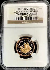 1991 ゴールド ジャージ 250 鋳造 1 ポンド NGC プルーフ 69 UC スクーナー「ザ ティックラー」